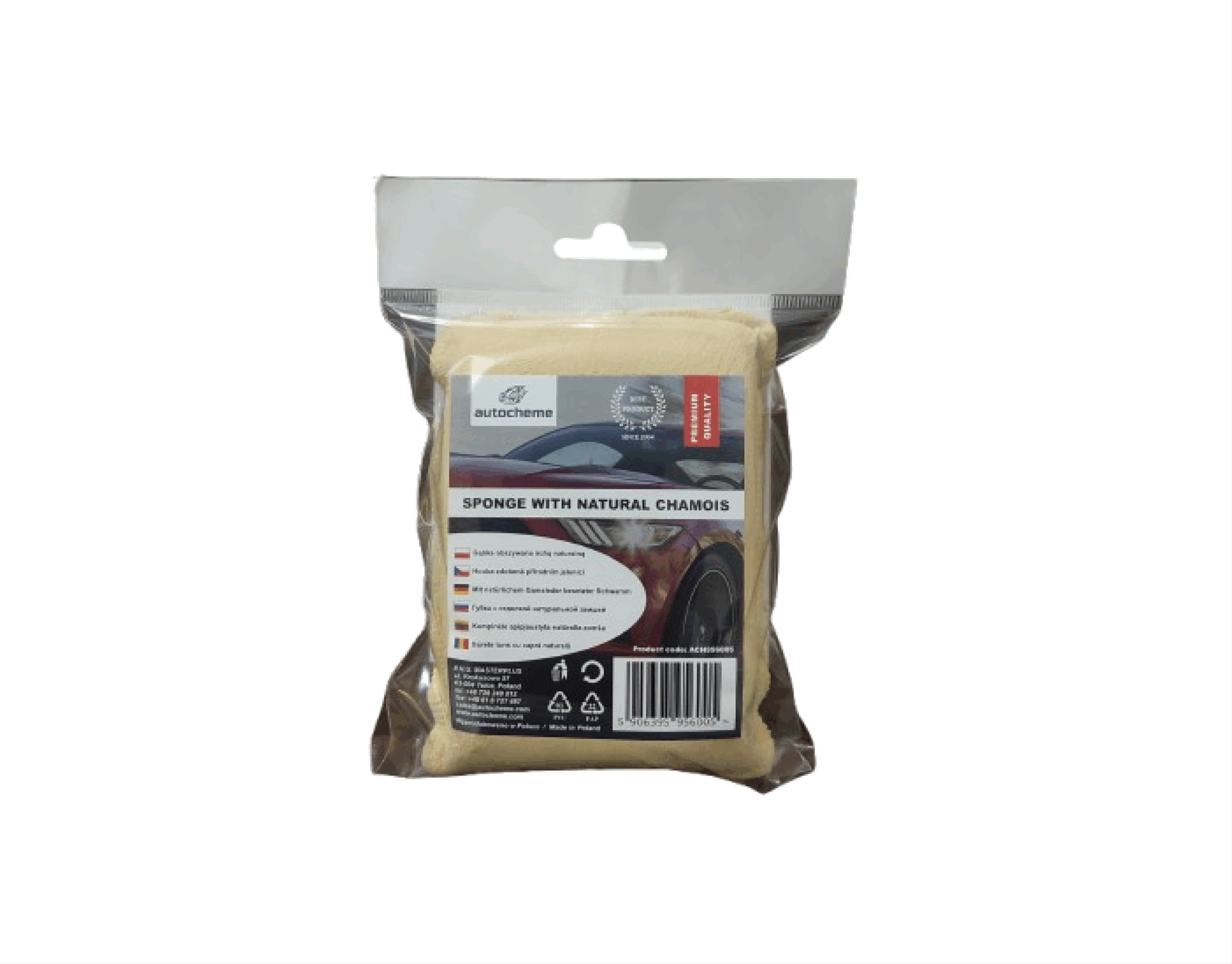 Wysokiej jakości gąbka obszyta irchą naturalną. Dzięki swojej chłonności znajduje zastosowanie praktycznie w każdym samochodzie do przecierania zaparowanych szyb oraz do czyszczenia reflektorów. Przydatna jest również w gospodarstwie domowym. Występuje w kolorze piaskowym. Materiał irchowy, z którego jest wykonana gąbka charakteryzuje się bardzo wysoką chłonnością i trwałością. Gąbka ta jest zdecydowanie bardziej polecana Klientom ceniącym sobie jakość i trwałość.