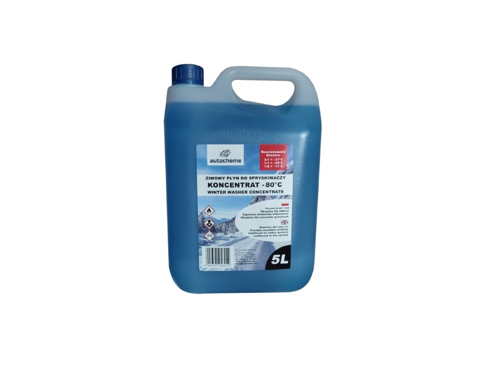 Zimowy koncentrat do spryskiwaczy – 80°C w opakowaniu 5L. Bardzo wydajny doceniony przez Klientów koncentrat, usuwa wszelkie zabrudzenia tj. lód, błoto pośniegowe, brud oraz wszelkie zanieczyszczenia z powierzchni szyb i reflektorów. Jest obojętny dla uszczelek gumowych i lakieru samochodowego. Płyn posiada przyjemną nutę zapachową.